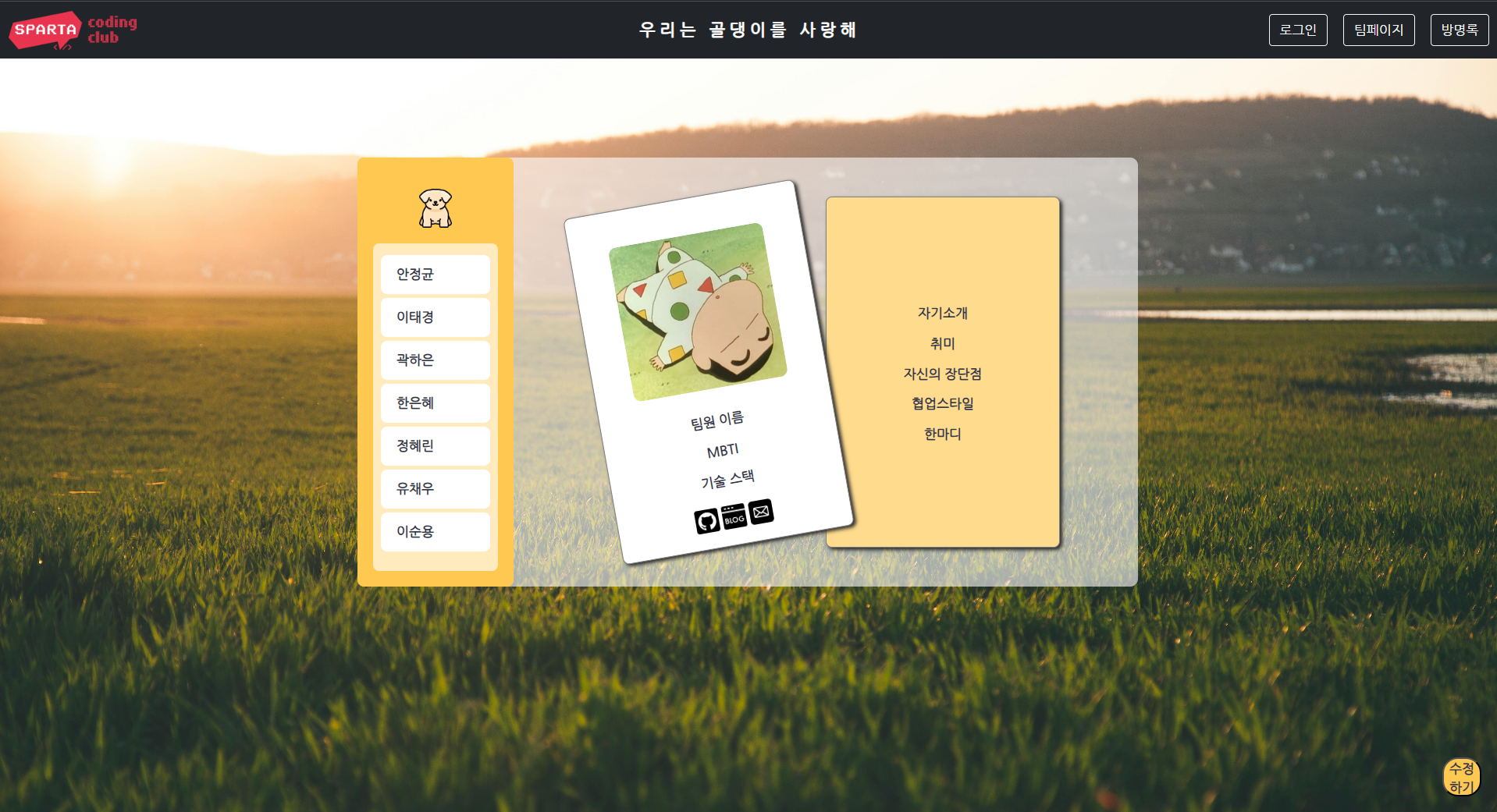 - 클릭 이벤트 → 클릭 시 해당 팀원의 데이터로 사원증을 채우도록 해야함