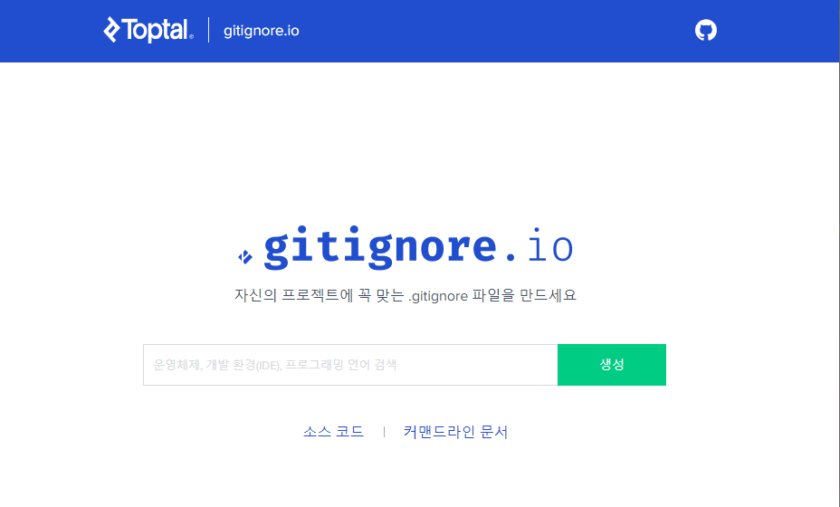 IDE들마다 각자 프로젝트에 맞는 ignore파일들을 만들어주긴 하지만, 이 사이트는 알맞은 키워드를 입력하면 그 키워드에 맞게 gitignore파일을 만들어준다.